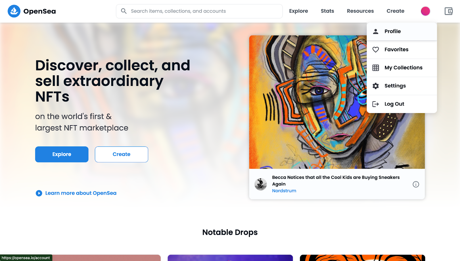 After connecting the wallet, hover the cursor over the identicon and click on Profile.