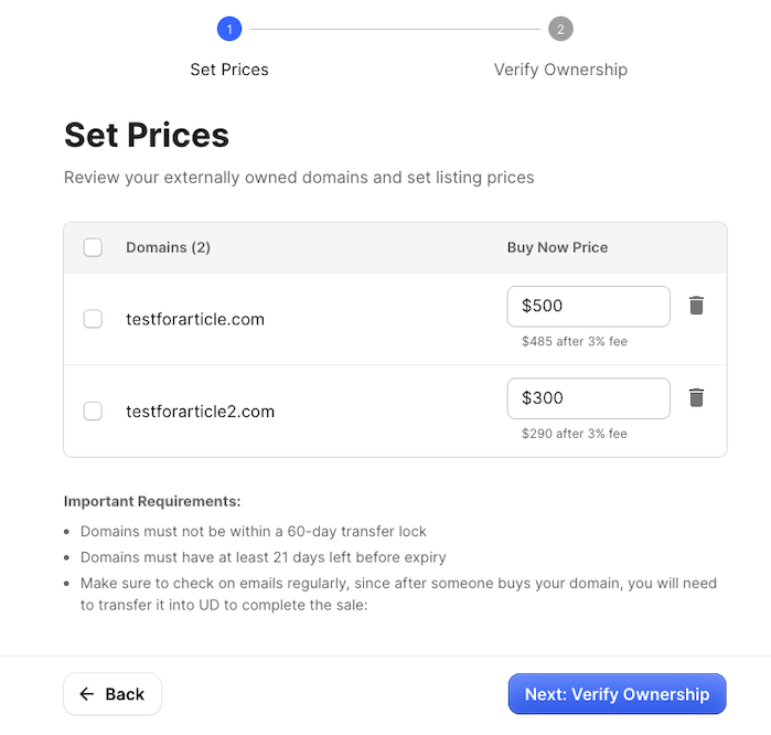 • External listings do not require the domain to be transferred to Unstoppable Domains.
