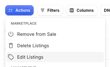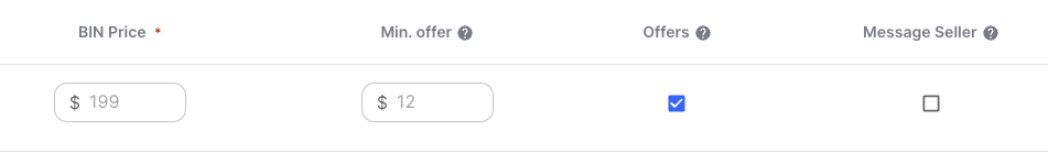 You can check the box next to your domain and select Edit Listings under Actions to adjust your BIN price, minimum offer price, or disable offers entirely. You can also enable or disable messaging.