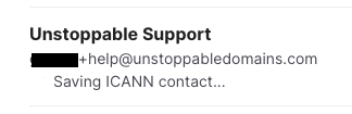 - Regardless of privacy settings, valid contact information must always be on file with the registrar (Unstoppable) to comply with ICANN requirements.