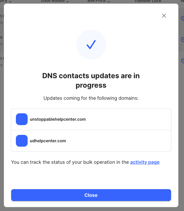 You will see a buffering icon indicating that it is saving the Contact. Once complete, you can apply it to your domain(s).