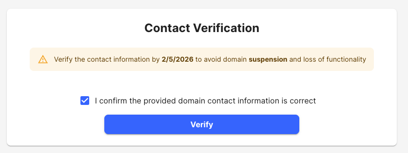 The subject will be: "[Action Required] Verify contact information for <your-domain.com>"